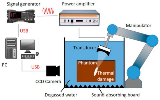 - Li, F.; Feng, R.; Zhang, Q.; Bai, J.; Wang, Z. Estimation of HIFU induced lesions in vitro: Numerical simulation and experiment. Ultrasonics 2006, 44, e337–e340. [Google Scholar] [CrossRef]