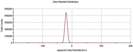Figure 3 depicts the zeta potential distribution measured for the N-TiO2 particles dispersed in an aquatic environment.