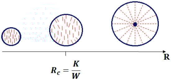 Comparing the two energy contributions, it is possible to define a critical radius as the ratio of the elastic energy to the anchoring energy K/W [32]. For the droplets of radius smaller than the critical radius, it will be energetically favorable to change the anchoring at the surface [35] and, thus, relax the elastic deformation leading to a uniform orientation of the director (Figure 4). This happens for the droplets with a radius in the order of a micron.