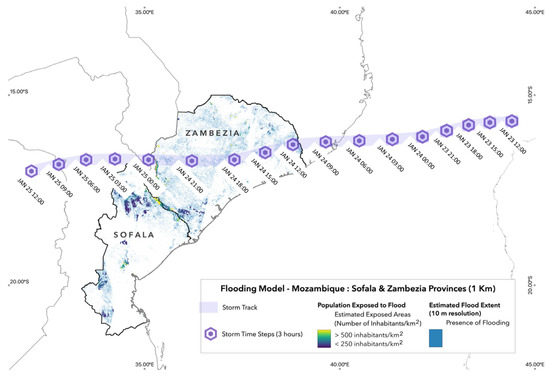 The overall flooding model can be seen in Figure 4 overleaf, at a high resolution of 10 m. Most of the flooding occurred throughout the Zambezia province, along the storm track, while in the Sofala province, the majority of flooding occurred in the north of the Sofala region near the Zambezi River.