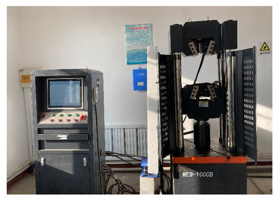 Figure 1 shows the electro-hydraulic servo universal material testing machine (WES-1000B, Wuxi Huaxi Building Material Testing Instrument Co., Ltd., Wuxi, China) that was used for the confined compaction test on crushed gangue. The instrument is capable of providing a maximum load of 1000 kN, and the entire experiment process can automatically measure and collect data, such as load and displacement. The compacting device consists of a loading pressure head, steel cylinder, and base. The steel cylinder is made of seamless steel pipe, with a wall thickness of 13 mm, an inner diameter of 150 mm, and a height of 230 mm. The samples were sieved before and after compaction, using a new standard soil sieve (0.075–60 mm, Shaoxing Highway Instrument Equipment Co., Ltd., Shaoxing, China).
