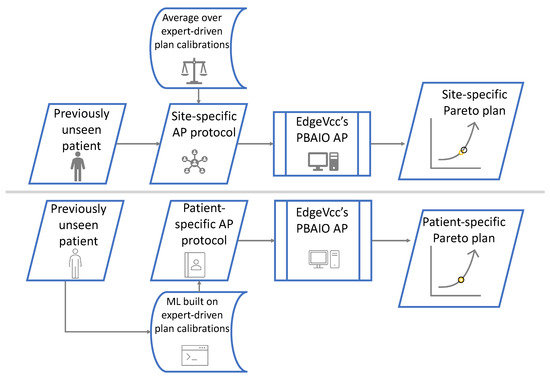 The AP system used in this study is the Experience-Driven plan Generation Engine by Velindre Cancer Centre (EdgeVcc). It is a PGAP system built on a PBAIO framework with a Pareto navigation calibration interface. It is written in Python version 2.7 and implemented in the RayStation TPS using its native scripting functionality. What follows is an overview of the system, focusing on the definition and calibration the AP protocols that define the balancing of competing trade-offs during plan generation. A full description is provided by Wheeler et al. (2019) [16].