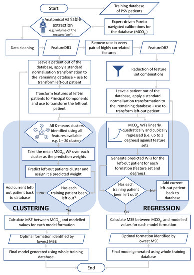 ML techniques used in this work are not new to radiotherapy planning. PCA [5], regression [5,50] and clustering [54] have all been used in KBP to make predictions based on anatomical features with notable success. This work builds upon this knowledge in two ways. Firstly, previous ML implementation would typically seek to generate a patient-specific input to a native treatment planning optimiser. In contrast this novel approach aimed to generate patient-specific AP protocols to further personalise an already validated RBP solution. Secondly we present a methodology to evaluate the performance of different model formations using a LOOCV decision framework, such that the optimal model for a given site can be selected. This allowed for an automatic and unbiased choice among different models comprised of various feature sets, types of features and types of model. This approach helps to resolve the challenge of defining a ML formation prior to training and allows for bespoke architecture to be utilised for individual PGs, thus removing the requirement for a homogeneous ML approach, which may not be appropriate. Results of this study support this assertion, with different model formations selected during the LOOCV model selection process.