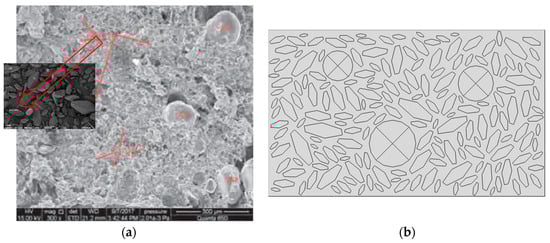 From the aspect of AP grain morphology, as shown in Figure 2b, the rounded grain was generated in a local coordinate system, as shown in Figure 3b; then, the polygon grain was discretized into particles. Considering the movement operations of grains in the matrix, the equation would be as follows: