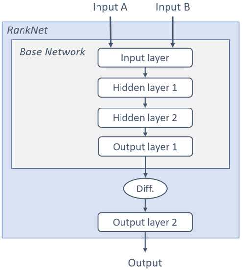 Despite the widespread use of neural networks, only a few papers have been published on their application to ranking problems. Although we can find some examples of their application in information retrieval [29,30], image classification [31], and developing recommendation systems [32], these implementations are mainly unique due to the specific nature of the tasks. For example, while mainly convolutional neural networks are used for object ranking, in text-processing-based ranking tasks, recurrent networks or BERT [33] models are mainly used. Nevertheless, for paired comparison tasks, the RankNet [34] neural network can provide a solution. This kind of neural network implements the learn-to-rank approach and uses gradient descent to obtain a ranking function.