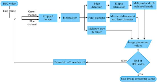 A flowchart describing the image evaluation for the determination of spectral and geometric information from the melt pool is illustrated in Figure 3.