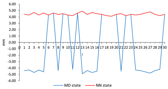 MD state of the series of displacements, we applied Equation (27), and the results with the corresponding absolute percentage errors are shown in