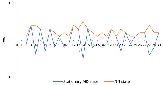 to also be forecasted. The two-state time series of the first difference monitored data is presented in