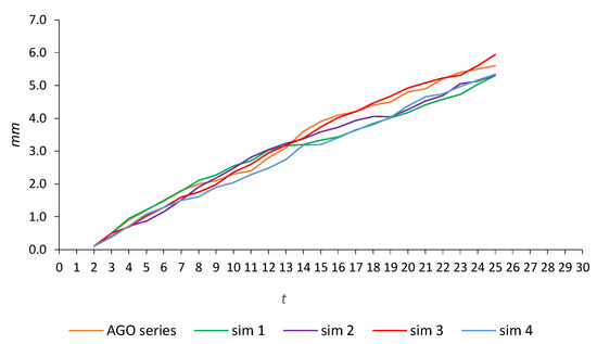 After one thousand simulations of Equation (53), the following expected AGO and corresponding IAGO outcomes are presented in