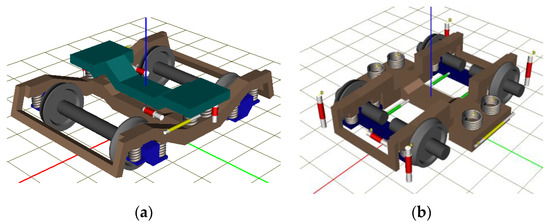 Two types of bogie models: (a) a bogie with integrated wheelsets; (b) a bogie with the independently rotating wheelsets.