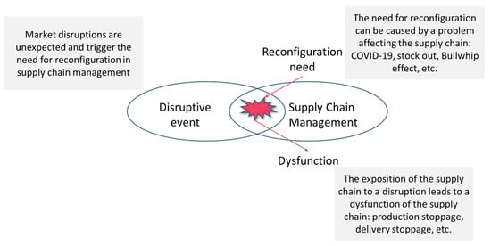 The need for reconfiguration is usually triggered by a hazard or disruptive event that causes a partial or total dysfunction in the supply chain. This event occurs as a result of failures and unexpected problems that can affect the functioning of supply chains on the strategic, tactical and operational decision levels (demand fluctuation, geopolitical instability, stock shortage, delivery problem, etc.). Figure 2 illustrates the triggering mechanism of the reconfiguration need due to a disruptive event.