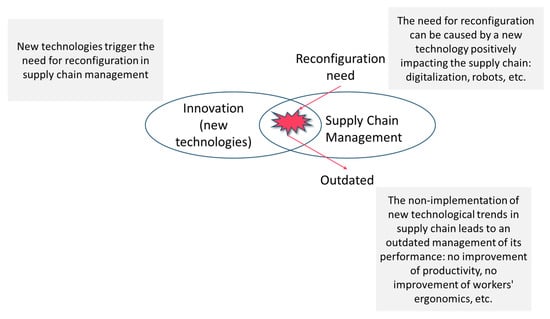 The emergence of new technologies (Industry 4.0, etc.) and continuous improvement processes require the implementation of reconfiguration strategies without the need for a hazard event to trigger the need for change. This type of reconfiguration can be deployed as a part of an innovation strategy to improve the operational and organizational performance of the supply chain (AGV, autonomous robots, warehouse redesign, etc.). In this case of reconfiguration, the advantage is to change without having a supply chain dysfunction; the objective is to avoid being outdated and to meet new market trends. Figure 3 illustrates the triggering mechanism of the reconfiguration need for innovation.