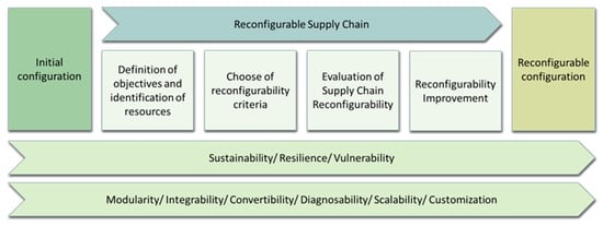 The implementation of reconfigurable supply chains is an effective solution for decision makers to bridge failures and cope with market disruptions and changes. However, in recent years, several concepts have emerged which remain important for an optimal and successful supply chain design. Therefore, it is important to consider these concepts in the design of reconfigurable supply chains, namely sustainability, resilience and vulnerability, as shown in Figure 5.