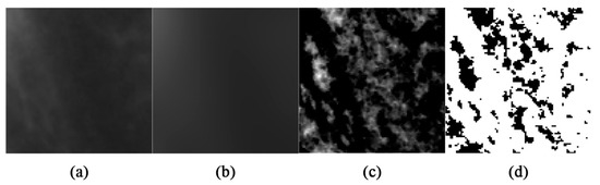 ROIs after the (a) clear outside, (b) Gaussian blur, (c) subtracting, and (d) make binary functions.