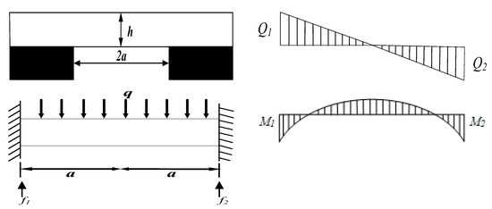 It can be seen from Equation (4) that the maximum shear force is obtained at both ends of the fixed beam: , ultimate bending moment: (0 < x < 2a).
