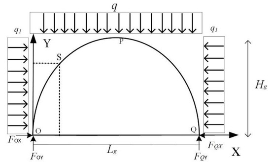 The structural arch shape equation can be obtained by substituting the coordinates of O, P, and Q: