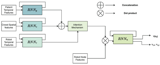 - Liu, S.; Chang, P.; Liang, W.; Chakraborty, N.; Driggs-Campbell, K. Decentralized Structural-RNN for Robot Crowd Navigation with Deep Reinforcement Learning. In Proceedings of the IEEE International Conference on Robotics and Automation (ICRA), Xi’an, China, 30 May–5 June 2021; pp. 3517–3524. [Google Scholar]