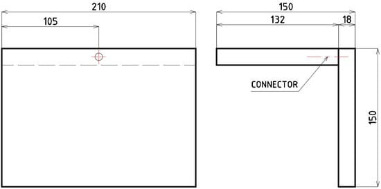 For the investigations, a virtual model of case-type construction consisting of four elements, bottom, top, and two side walls, was adopted. The overall dimensions of the construction were 2000 mm high, 800 mm wide, and 550 mm deep. Two variants of construction materials have been chosen: an 18 mm thick MDF board and an 18 mm thick laminated three-layer particleboard. The connections of the top and bottom with the side walls were made using eccentric connectors, two for each joint.