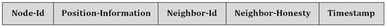 Nodes acquire data utilized in the decision process when communicating with their neighbors’ by recording the packet loss rate, delay, and packet reordering of each neighbor node, after which they then calculate their Honesty and store it locally in their table of neighbors. Table 3 is an example of a node neighbors’ table.