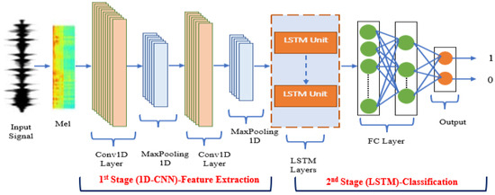 - Xu, G.; Ren, T.; Chen, Y.; Che, W. A One-Dimensional CNN-LSTM Model for Epileptic Seizure Recognition Using EEG Signal Analysis. Front. Neurosci. 2020, 14, 578126. [Google Scholar] [CrossRef]