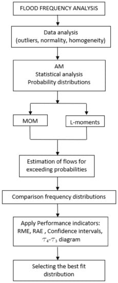 The determination of the maximum flows was carried out in stages according to Figure 2. The verification of the character of outliers, normality and homogeneity were carried out in the data curation phase.