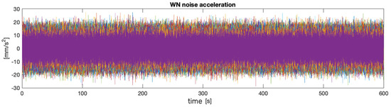 input signal: pseudo–random white noise signal, with a length of 10 min and a sampling frequency of 200 Hz, for each damage identification run