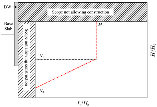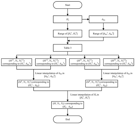 As described above, the determination parameters, M and N2, of the influenced zone have a linear relationship with He and δhm; N1 is less affected by He and δhm and varies between 1–2 with an average of about 1.5, so it can be taken a constant. Based on these conclusions, a method for predicting the scope of the influenced zone under any He and δhm conditions is proposed through linear interpolation, as shown in Figure 12.