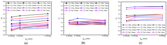 Table 3 summarizes the determination parameters of the influenced zones under different simulation conditions. It is observed that the scope of the influenced zones is closely related to He and δhm, and the effects of these two factors on the M, N1, and N2 are analyzed in the following.