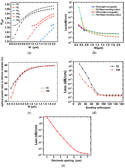 - Jin, S.; Xu, L.; Zhang, H.; Li, Y. LiNbO3 thin-film modulators using silicon nitride surface ridge waveguides. IEEE Photonics Technol. Lett. 2015, 28, 736–739. [Google Scholar] [CrossRef]