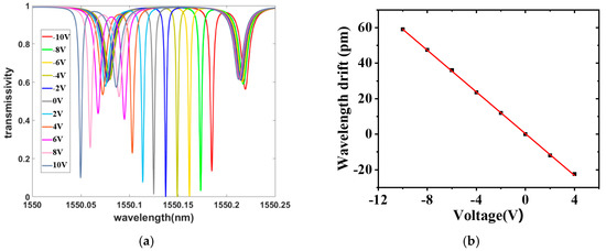 - Zhou, Z.; Zhang, S. Electro-optically tunable racetrack dual microring resonator with a high quality factor based on a Lithium Niobate-on-insulator. Opt. Commun. 2020, 458, 124718. [Google Scholar] [CrossRef]