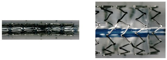 - Berry, J.L.; Manoach, E.; Mekkaoui, C.; Rolland, P.H.; Moore, J.; Rachev, A. Hemodynamics and Wall Mechanics of a Compliance Matching Stent: In Vitro and In Vivo Analysis. J. Vasc. Interv. Radiol. 2002, 13, 97–105. [Google Scholar] [CrossRef] [PubMed]