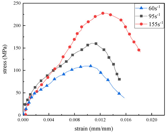 Dynamic stress–strain curves of sandstone at different strain rates.