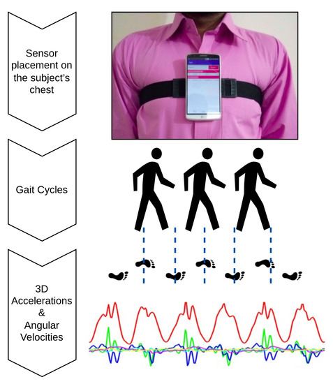 Wearable inertial sensors, such as smart fitness bands, smartwatches, smart in-soles, etc., have turned into a key enabling technology for a wide variety of applications. They are low cost, do not impose any environmental constraints, and have been widely used in human gait analysis, healthcare and health monitoring, and sports activities [20,21,22,23,24]. The inertial gait data collected via wearable gadgets have been analysed to better understand human motion from a variety of perspectives such as estimating soft-biometrics such as gender, age, and height [25,26], predicting emotions [19,27,28], classification of terrains and ground surfaces [29], human activity recognition [30,31], cognitive impairment and fall detection [32,33,34], and even person re-identification [35,36].
