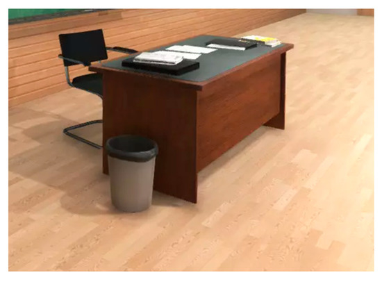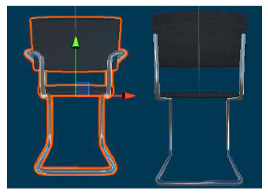 - Chairs—two distinct sorts of chair prefabs, one for the lecture hall and the other one for the desk, were defined (see Figure 3);