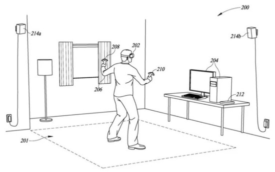 Valve Index controllers (Figure 14—items 208 and 210) have a joystick, touchpad, two control buttons, a menu button, a trigger, and an array of 87 sensors that allow the controllers to track hand position, finger position, movement, and pressure to create an accurate representation of the user’s hand in virtual reality. In addition, the controllers also include an accelerometer for additional measurements.
