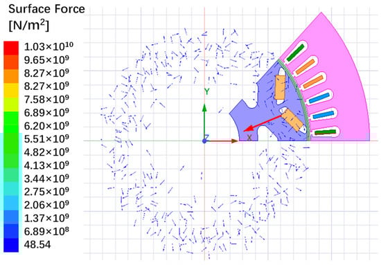 The rotor rotates due to the electromagnetic force generated by the interaction of the magnetic field and the current. The calculation equation for electromagnetic stress is as follows [14]: