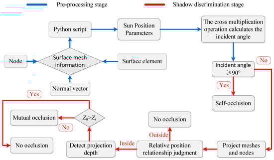 The sunshine shadow recognition method based on ray tracing in this paper adopts the process shown in Figure 6. The specific implementation steps are as follows: