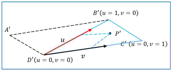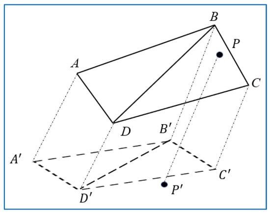 In the process of projection point inclusion detection, if the quadrilateral mesh () obtained by the projection in Figure 8 is directly used to determine this, the calculation process is more complicated. Therefore, the quadrilateral surface mesh obtained by projection was divided into two triangles ( and ) along a diagonal to determine projection point inclusion, respectively.
