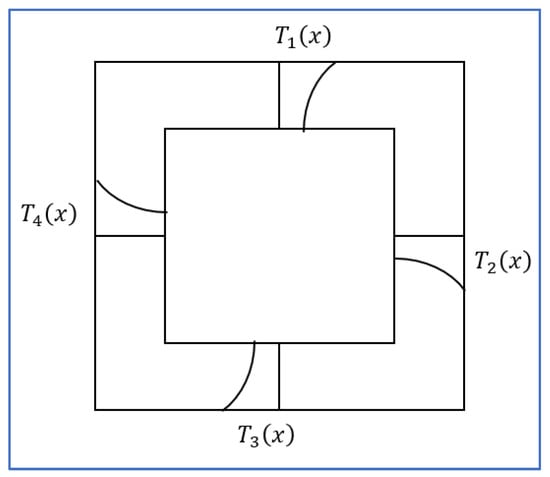 Temperature load loading mode. Note: T1(x), T2(x), T3(x), and T4(x) in the diagram are all the calculation relations of temperature in the thickness direction of each tower wall fitted by Formula (33).