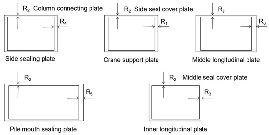 In the above figure, R1 is the thickness of the crane support plate. R2 is the thickness of the side seal cover plate. R3 is the thickness of the inner longitudinal plate. R4 is the thickness of the side sealing plate. R5 and R6 are the thickness of the pile mouth sealing plate and the middle longitudinal plate, respectively.