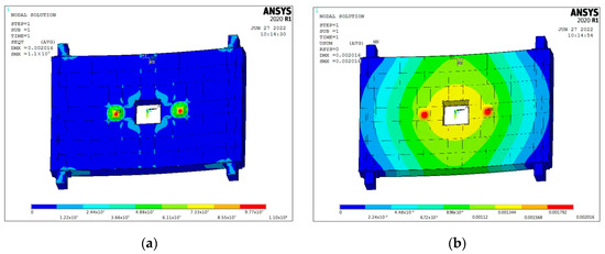 Large body skeleton stress cloud and skeleton displacement cloud. (a) Large body skeleton stress cloud; (b) large body skeleton displacement cloud.