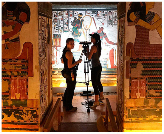 In this way, the use of 3D scanning technology has played a crucial role in preserving the legacy of the Nefertari tomb and ensuring that its story is not lost to time. The virtual tours allow for a greater understanding of the tomb’s rich cultural and historical significance, and provide a new way for people to explore and appreciate this important site. The 3D scanning of the Nefertari tomb was performed by a team of experts, including archaeologists, conservators, and technology specialists. Figure 5 depicts the relevant work conducted in Nefertari tomb [68,69].