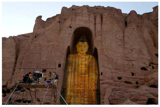 In addition, the Bamiyan Buddhas in Afghanistan is also a relevant case where 3D scanning was used to document the statues of Bamiyan Buddhas. The Bamiyan Buddhas in Afghanistan were two massive ancient statues of the Buddha carved into the cliff face of Bamiyan Valley. Sadly, they were destroyed by the Taliban in 2001. Recently, however, there has been a resurgence of interest in preserving and reconstructing the site. One of the methods being used is 3D scanning. By using lasers to scan the remaining structures, a digital model of the Bamiyan Buddhas can be created, allowing for detailed analysis and potential reconstruction in the future. This innovative technique is helping to keep the memory of the Bamiyan Buddhas alive and ensure that their cultural significance will be preserved. Figure 6 depicts the relevant 3D scanning operations in Bamiyan Buddhas, Afghanistan [70].