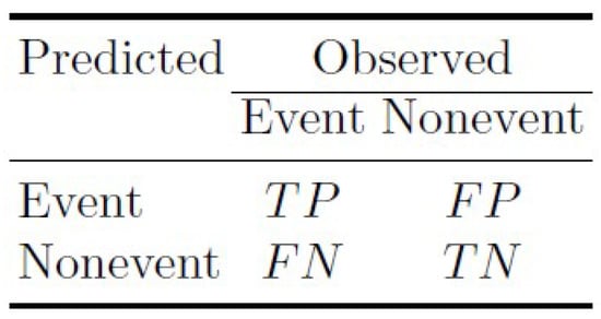 Table 3 shows the frequencies of the four possible combinations of predicted and occurring events.