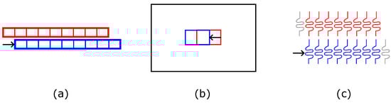 As transducer motion is constrained to occur within the imaging plane, it should be visible in the imaging data as a contrary motion of the imaging targets. Although ultrasound is best suited to motion estimation in the beam direction [32,33], it is possible to estimate motion in the transverse (lateral) direction using speckle tracking [34] or transverse oscillation [35,36] approaches. An alternative approach is presented below that is well suited to the constrained motion problem. These approaches are shown in Figure 4. In both cases, the same recorded data from plane wave transmissions were used to maintain an approximately constant transmit field and measure the motion of the receiving array (using the diverging wave data only for image formation). While it should be possible to measure displacement from a spatially varying transmit field as well, that would result in additional decorrelation [37] and is outside the scope of this paper.