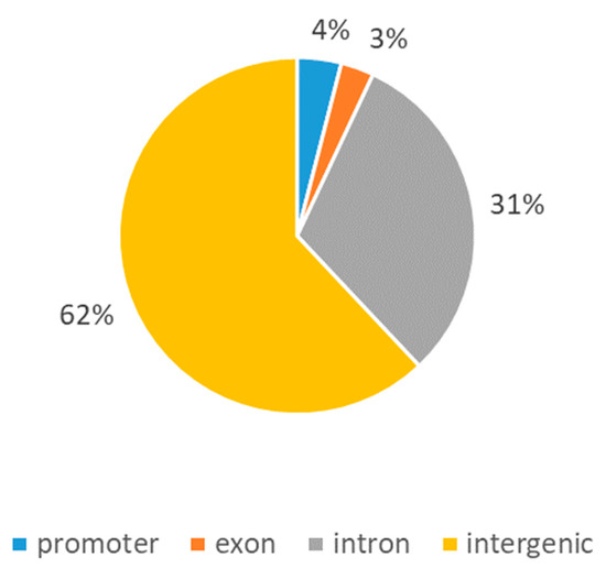 DNA methylation in a promoter usually correlates with the repression [45]. Methylated genes are known to be linked with genomic region-specific DNA methylation patterns [46,47].