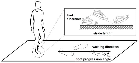 Gait analysis assesses and measures the temporal and spatial characteristics of the body during motion. Gait characteristics data can be used as diagnostic parameters for various adult diseases, resulting in numerous clinical researchers focusing on developing technologies for measuring gait characteristics [1,2]. Among gait parameters, stride length (SL), gait speed (GS), and foot clearance (FC) are used to determine the risk of falling [3,4,5]. In addition, the foot progression angle (FPA) could be applied to examine the characteristics of the load applied to the knee joint while assessing degenerative arthritis [6,7,8,9].