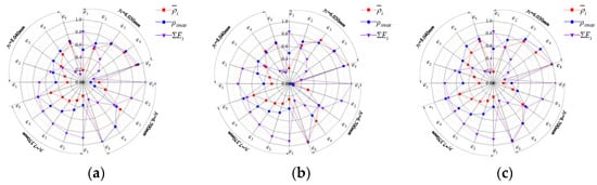 The mean, maximum, and total friction wear energy density of each characteristic point of the tool flank for one cutting cycle at multiple positions on the cutting edge under two scenarios were compared, where the comparison results of the two solutions for the intermediate cycle of the milling cutter are shown in Figure 11 and Figure 12. The cutting intermediate cycle for scheme 1 is the 287th cutting cycle, and the cutting intermediate cycle for scheme 2 is the 320th cutting cycle.
