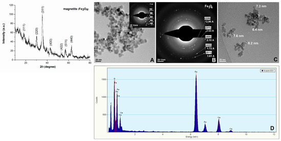 3.1. XRD and TEM for Magnetite Nanoparticles