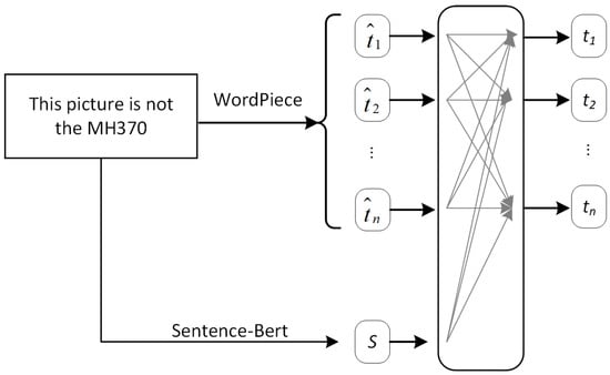 Specifically, we combined the embedded words and sentences in the following way. Word information could ensure that the TDEDA model chose the right keywords to interact with visual features in the process of feature understanding and further inferred whether the tweet was rumor information or not. The purpose of marking with WordPiece was to process the text information into continuous word information and to facilitate the presentation and extraction of word information and sentence information through a self-attention embedded representation, as shown in Figure 2.